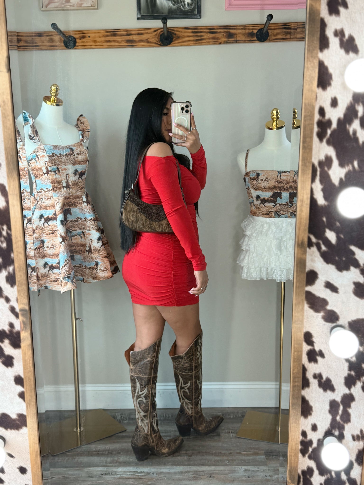 Stretchy • Double Layered • Buttery • True to size • Ruched • Mid Length • Off shoulder asymmetrical dress